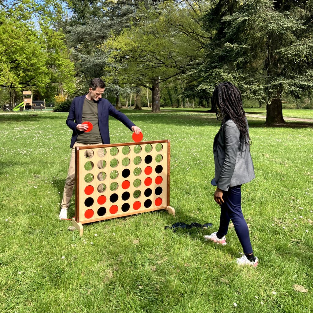 J’ai eu envie de créer un espace où ce lien puisse se raviver naturellement. Sans effort. Sans obligation. Juste en jouant. Les jeux géants m’ont semblé une évidence. Ils rassemblent petits et grands, inconnus et intimes. Ils font tomber les masques et les âges, réveillent le rire, et surtout… ils recréent ce lien simple et vivant que nous cherchons tous.